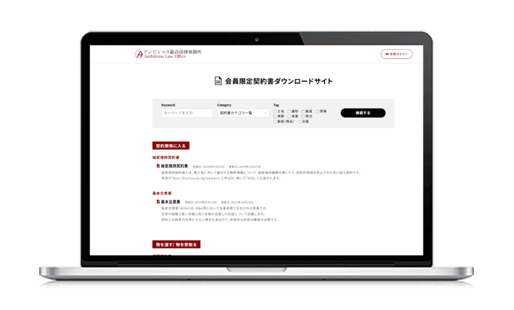 アンビシャス総合法律事務所が提供する契約書テンプレート(Word)の会員限定無料ダウンロードサイトを公開いたしました。